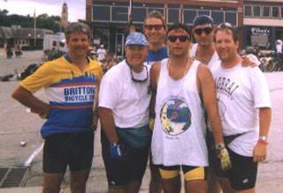The guy on the far left is Tom Leacock from Tampa, Florida. Tom and I met in 1989 riding 'Cross Florida - a one day 173.5 mile ride from CoCoa Beach to Pine Island Beach. Tom has joined me on four RAGBRAIs and he's a great friend, rider and handyman (couldn't have installed the shower system in the bus without his help).